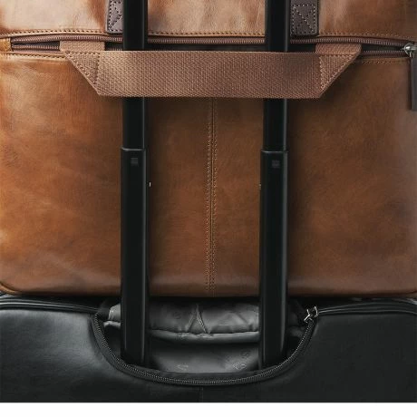 Uw stijlvolle zakenpartner. Deze lederen laptoptas met dubbele metalen rits is voorzien van een schokabsorberend 15,6 inch laptopvak en tabletvak, diverse ruime vakken voor A4-map, papierwerk en laptop-accessoires en zorgt ervoor dat u professioneel voor de dag komt. In het speciale RFID ritsvak worden uw bank-, creditkaarten en paspoort beschermd tegen skimmen. De leren laptoptas is voorzien van een lederen, afneembare, schouderband en handige trolleyband. Zowel in de hand, over uw schouder of over de trolleyhandle mee te nemen. Gemaakt van schitterend plantaardig gelooid stierenleer wat met de hand wordt ingeverfd. Het benadrukt de natuurlijke nerftekeningen in het leer. Voor de handvatten en schouderband is gebruik gemaakt van stug plantaardig gelooid riemenleer. Tijdloos, klassiek en exclusief.