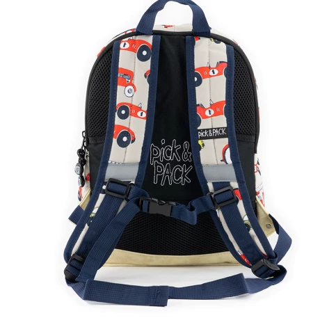 Rugzak voor kinderen van Pick & Pack. Deze rugtas is speciaal gemaakt voor kinderen vanaf 5/6 jaar en zijn zeer praktisch. Dankzij het juiste formaat is de rugtas geschikt voor A4 formaat schoolspullen, een lunchbox en alle andere benodigdheden. Voorzien van een speciaal vak voor een waterfles. Aan de binnenzijde zit een klein ritsvakje, vakje voor telefoon en een makkelijke sleutelhouder. Met daarop een adres label voor naam, adres en telefoonnummer. Makkelijk voor als de rugtas eens ergens wordt vergeten! Een apart gewatteerd vak is bereikbaar met een rits, hierin kunnen boeken of zelfs een 13″ laptop worden opgeborgen. Voorop een borstbandje om de rugzak stevig vast te maken tijdens het lopen. De rugtas is ook voorzien van kleine reflecterende details zodat je ook in het donker opvalt. Dankzij de gewatteerde schouderbanden en het ergonomische rugdeel is de tas goed door het kind zelf te dragen.