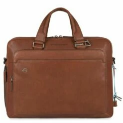 Luxe lederen laptoptas uit de Black Square serie van Piquadro. De collectie Black Square is gemaakt van full-grain Toscaans kalfsleer dat bewerkt is met plantaardige verf. De ongelijke look is het resultaat van een origineel proces, dat de warmte en de eigenschap van echt, onbewerkt leer behoudt. Na het looien plaatsen de deskundige handen de huiden in grote vaten gevuld met water zonder chemische stoffen toe te voegen. Het leer wordt dan gedroogd in trommels en vervolgens uitgelegd zodat vezels ontspannen. Dankzij dit proces, is elk stuk van de Black Square-collectie uniek.